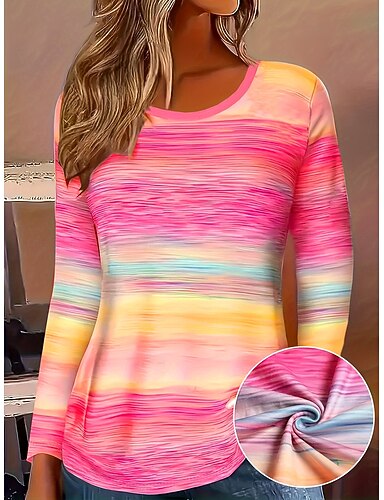 Mulheres Camiseta Imprimir Âmbar Gráfico Cores Gradiente Vintage à moda Clássico Manga Longa Gola Redonda Decote Redondo Tops regulares Diário Rosa Primavera Outono Inverno