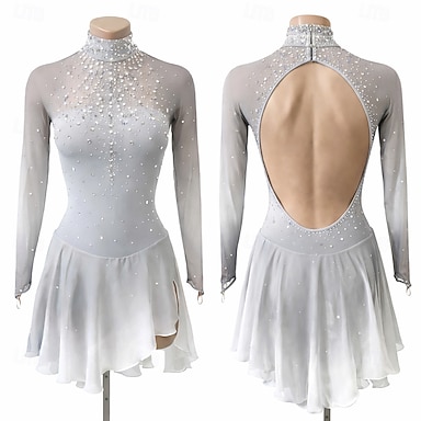 Vestidos para Patinação Artística Mulheres Para Meninas Patinação no Gelo Vestidos Cinzento Claro Barra Assimétrica Com Transparência Elasticidade Alta Treino Competição Roupa para Patinação Clássico