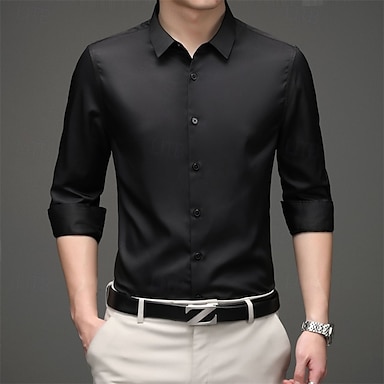 Homens Camisa Social Saia camisa de botão Tecido Casamento Diário Preto Branco Rosa Vinho Manga Longa Colarinho de Camisa Primavera & Outono Roupa Patchwork