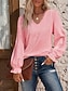 Mulheres Topo de ilhó Camiseta Pointelle Textura Gráfico Plantas Moda Clássico Manga Longa Decote V Tops longos Casual Diário Praia Azul Branco Rosa Verde Azul Claro Verão Primavera Outono