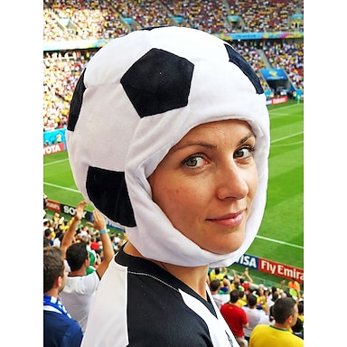 Boné feminino em formato de bola de futebol, feito de poliéster, ideal para torcedoras em jogos, para apoiar o time, para uso casual no dia a dia e para compor looks para os dias de jogo.
