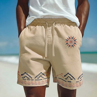 Homens Estampa Geométrica Étnico Totem do Sol Calção Shorts casuais Calções de algodão Cintura Média Vintage retrô Férias Dia a Dia Feriado Bolsos laterais Cintura elástica com cordão Designer Roupa