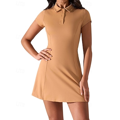 Mulheres Cor Sólida Vestido de tênis Vestido esportivo Manga Curta Patchwork Botões Elástico Redutor de Suor Respirável Tênis Golfe Badminton Colarinho polo Vestidos Marron Roupas de tênis