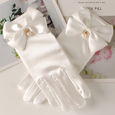 Terilene Até o Pulso Luva Elegante / à moda Com Laço / Perola Imitação / Cor Pura Luvas de Festa / Casamento