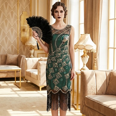 Conjunto Loucos anos 20 Anos 20 Até os Joelhos Vestidos Vestido melindroso Roupa com acessórios Sem Mangas O Grande Gatsby charleston Tamanhos Grandes Paetês Franjas Decote V Fantasia Mulheres