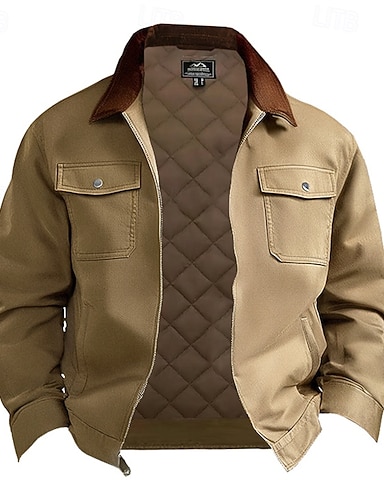 Homens jaqueta leve Jaqueta Carga Jaqueta casual Férias Diário Manter Quente Bolsos Outono Inverno Tecido Moda Clássico Colarinho Chinês Padrão Cáqui Claro cáqui Casaco