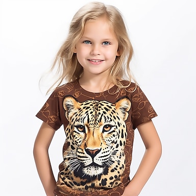 Para Meninas 3D Gráfico Animal Leopardo Camisa Camiseta Manga Curta Impressão 3D Verão Primavera Ativo Moda Roupa de rua Infantil 3-12 anos Ao ar livre Casual Diário Normal