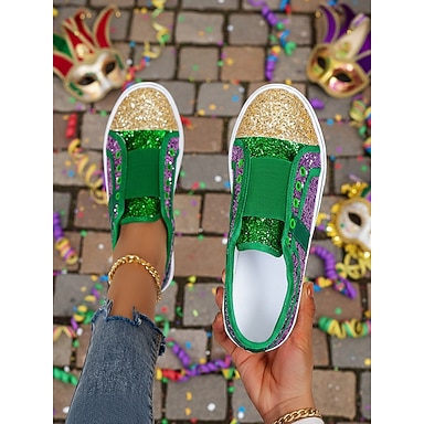 Tênis Slip-on Glitter Roxo para Mulheres – Sapatos de Lantejoula para Festivais de Música Festas de Carnaval e Moda de Rua Arrojada