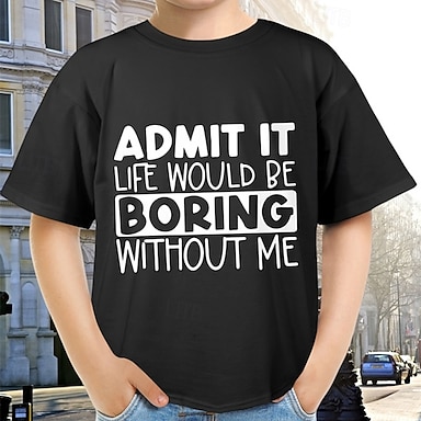 100% Algodão Infantil Para Meninos Preto Gráfico Frases e Citações Camisa Blusa Gola Redonda Manga Curta Ao ar livre Dia a Dia Moda Roupa de rua Designer Estampado Verão Primavera
