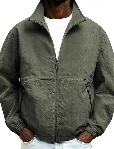 Homens jaqueta leve Jaqueta casual Diário Ao ar livre Respirabilidade Bolsos Primavera Outono Tecido Roupa de rua à moda Colarinho Clerical Padrão Azul Preto cáqui Verde Tropa Azul Escuro Casaco