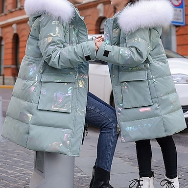 Infantil Para Meninas Jaqueta de penas Casaco puffer Côr Sólida Esportes Bolsos Mantenha Quente A prova de Vento Ao ar livre Casaco agasalhos 4-12 anos Inverno Rosa Verde