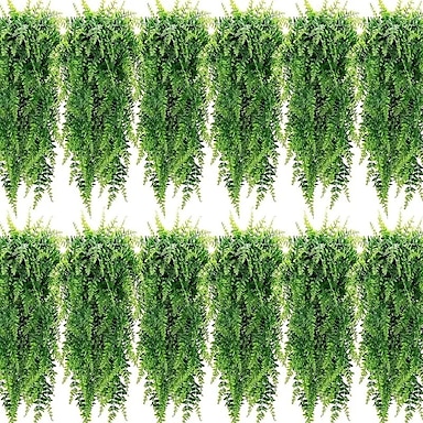 Pacote com 12 plantas artificiais suspensas de samambaia de Boston, 32 polegadas, vegetação artificial realista e sem manutenção para decoração interna/externa, casamentos, exposições, ação de graças,