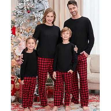 Olhar de família Natal Pijama de Natal para a Família Pijamas Conjuntos de família Xadrez Casa Imprimir Vermelho Manga Longa Diário Roupas Combinando