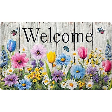Tapete de boas-vindas 43x74 cm (17x29 polegadas) para primavera/verão, para uso interno e externo, ideal para entrada de casa. Tapete discreto com base antiderrapante de borracha. Estampa floral.