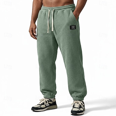 Homens Waffle Corredores Calças Calça casual Calça Waffle Com Cordão Côr Sólida Conforto Comprimento total Casual Diário Ao ar livre Férias Moda Azul Céu Preto Com Stretch