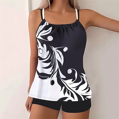 Mulheres Padrão Roupa de banho Tankini 2 Peças Estampado Secagem Rápida Elástico Sem Manga Roupa de Banho roupa de banho Surfe Praia Natação Verão