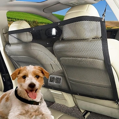 Rede de proteção para animais de estimação em carros, divisória universal ajustável para o banco traseiro do carro, com cintos e ganchos ajustáveis para cães, ideal para SUVs e picapes.