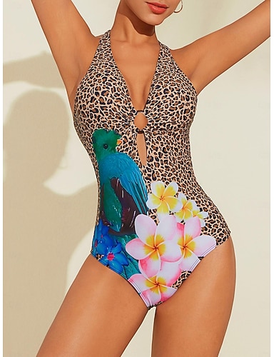 biquíni floral com anel de leopardo e triângulo