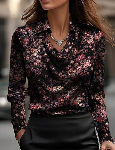 Mulheres Camisa Social Imprimir Com Pregas Floral Gráfico Elegante à moda Casual Manga Longa Gola Boba Tops regulares Diário Trabalho Feriado Verde Primavera Outono