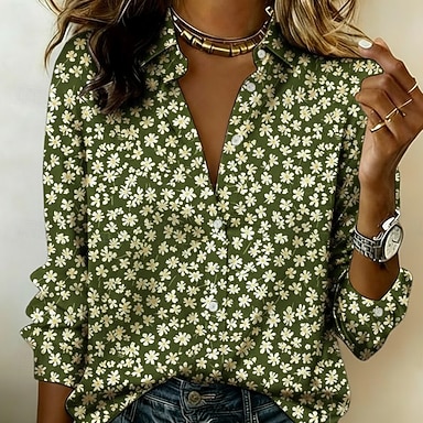 Mulheres Camiseta Imprimir Floral Gráfico Gradiente Elegante Vintage à moda Manga Longa Gola Redonda Decote V Tops regulares Diário Cinza Verde e Azul Arco-íris Verão Primavera Outono
