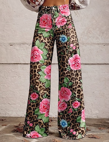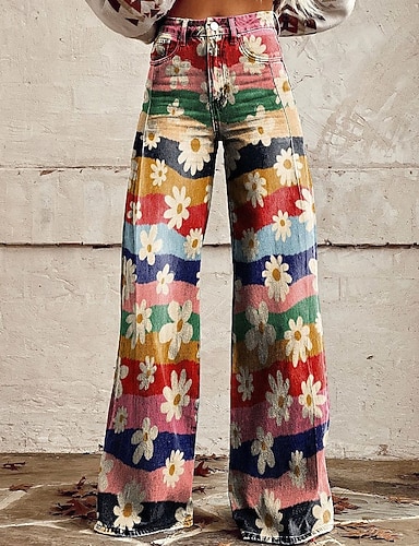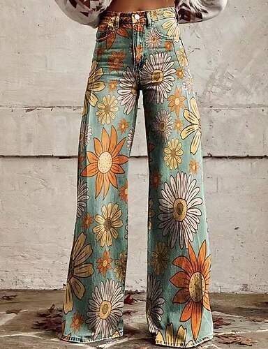 Retro Vintage Boho Anos 70 Calças Calças de pernas largas Hippie Discoteca Cintura Alta Floral Estilo Jeans Falso Fantasia Mulheres Carnaval Festival de Música Parada do Orgulho Festa Temática Retro