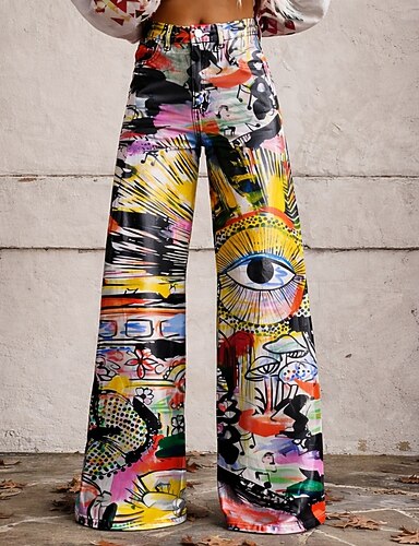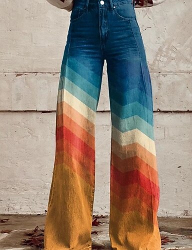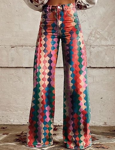 Retro Vintage Anos 70 Groovy Calças Calças de pernas largas Hippie Discoteca Cintura Alta Psicodélico Estilo Jeans Falso Fantasia Mulheres Carnaval Casual / Diário Festival de Música Festa Temática
