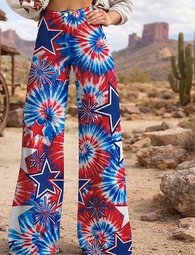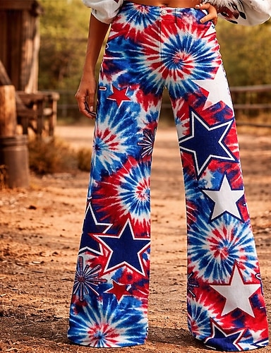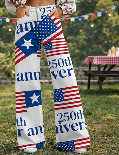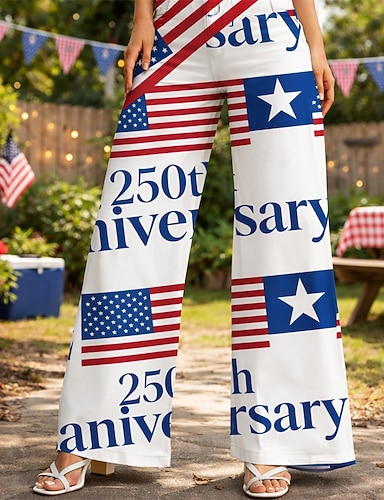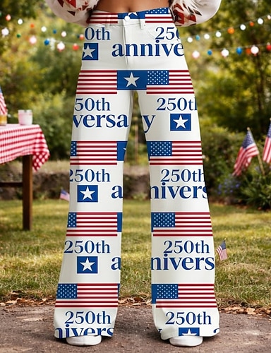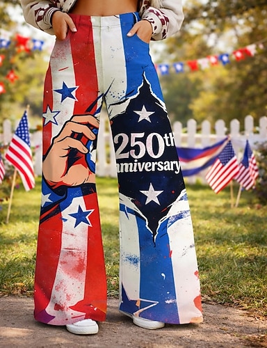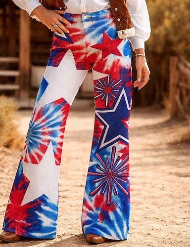 250º Aniversário EUA Retro Vintage Anos 70 Calças Calças de pernas largas Hippie Discoteca Cintura Alta Fantasia Mulheres Baile de Máscaras 4 de julho Dia da Independência Adulto Calças