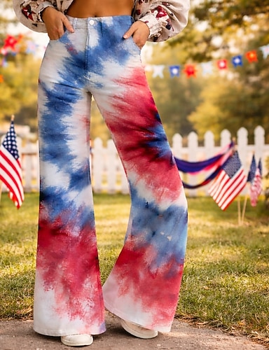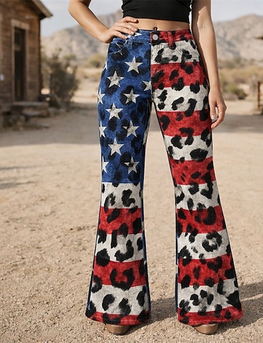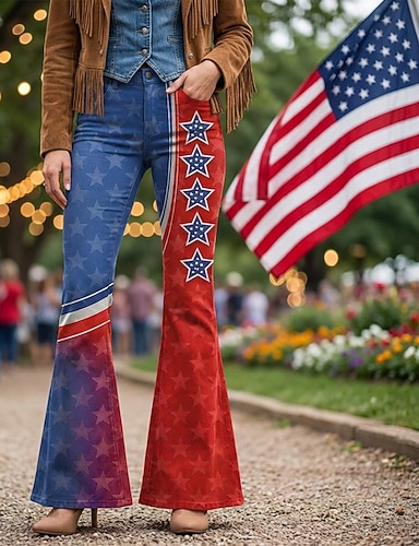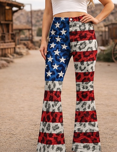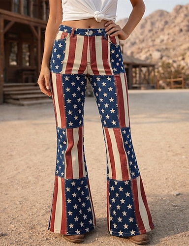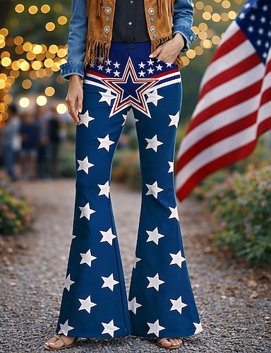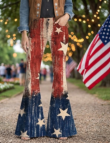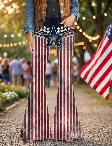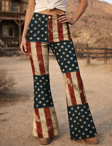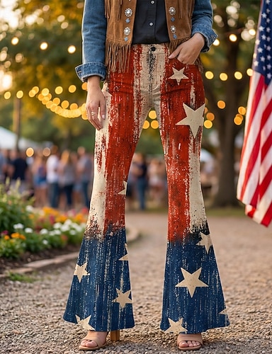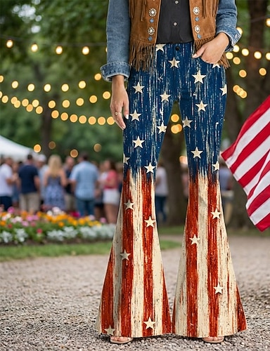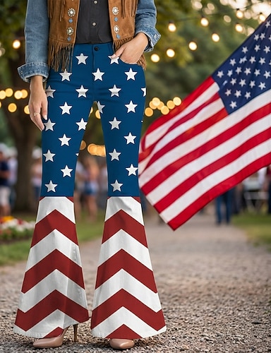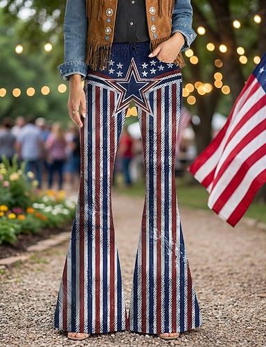 250º Aniversário EUA Retro Vintage Anos 70 Calças Calça boca de sino Hippie Discoteca Cintura Alta Fantasia Mulheres Baile de Máscaras 4 de julho Festa Dia da Independência Adulto Calças