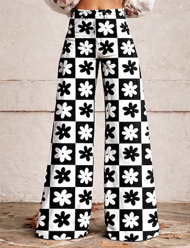 Retro Vintage Boho Anos 70 Calças Calça boca de sino Hippie Discoteca Cintura Alta Floral Símbolos da paz Fantasia Mulheres Dia Das Bruxas Carnaval Festival de Música Festa Temática Retro Adulto
