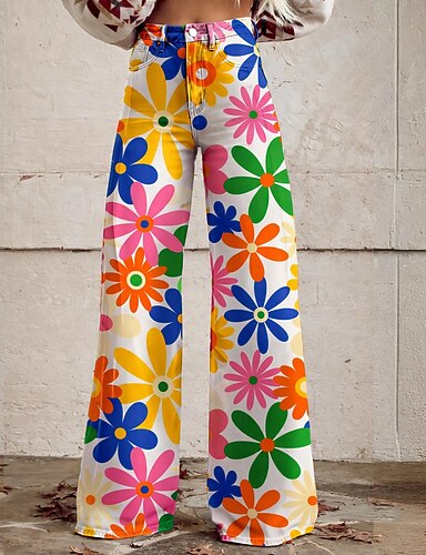 Retro Vintage Boho Anos 70 Calças Calça boca de sino Hippie Discoteca Cintura Alta Floral Fantasia Mulheres Baile de Máscaras Festival de Música Festa Parada do Orgulho Adulto Calças