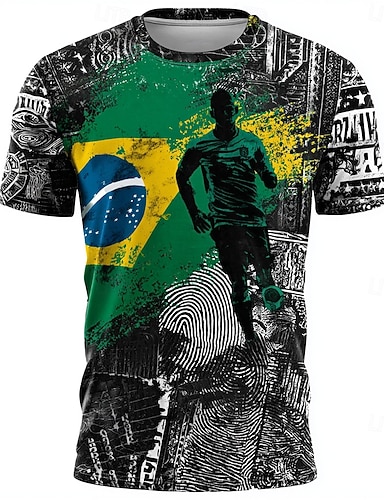 Homens Bandeira Brasil Camiseta Manga Curta Camiseta Impressão 3D Gola Redonda Camisa Ao ar livre Roupa Esportiva Amarelo Verde Verão Primavera Roupa S M L XL XXL XXXL