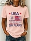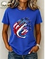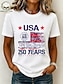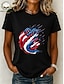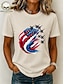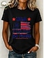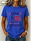 Dia da Independência Americana Mulheres Camiseta Imprimir Gráfico Letra Bandeira americana à moda Clássico Casual Manga Curta Gola Redonda Tops regulares Diário Azul Beje Claro Preto Branco Rosa