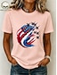 Dia da Independência Americana Mulheres 100% Algodão Camiseta Imprimir Bandeira americana Moda Básico Manga Curta Gola Redonda Tops regulares Casual Final de semana Beje Claro Preto Branco Rosa Azul