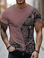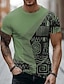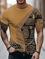 Camiseta masculina com estampa tribal em amarelo mostarda, manga curta e gola redonda, tamanhos P, M, G, GG, XGG e XXGG.