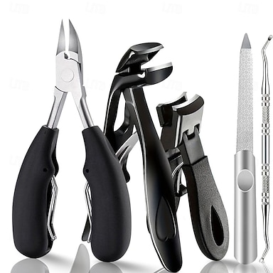 Conjunto de cortadores de unhas de aço inoxidável com 5 peças, cortadores de unhas dos pés com abertura grande e cabo de borracha antiderrapante, lâminas afiadas e antirrespingos para unhas grossas