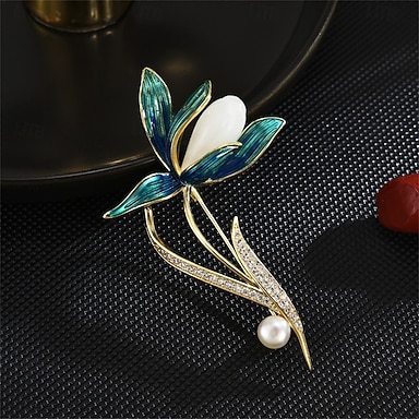 Broches Clássico Retro Flor Elegante Moda Personalizada Simples Luxo Broche Jóias Branco / Prateado Rosa pérola Verde Para Casamento Festa Presente Noivado Baile de Formatura Festival