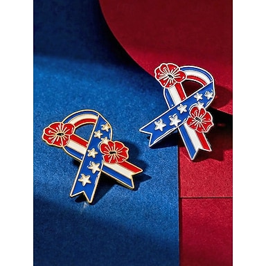 Conjunto de broches femininos em liga metálica com formato de flor e fita, alfinetes de lapela patrióticos em ouro e prata para a celebração dos 250 anos da América, Dia da Independência, para usar em