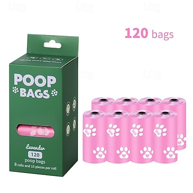 Novo saco de cocô de cachorro reciclável e ecológico, bolsa de armazenamento portátil, clipe para mãos livres, saco de lixo para animais de estimação, 8 rolos com cabeça de clipe