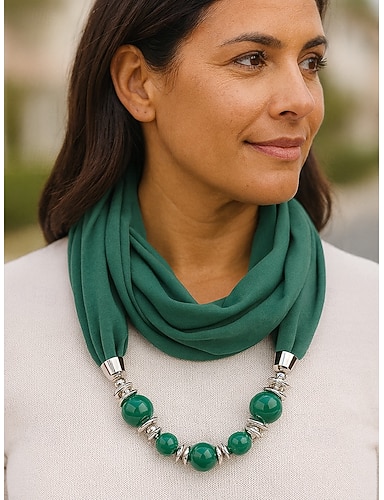 Colar cachecol feminino multicolorido e quente - cachecol leve com pingente de contas em formato de infinito, acessório elegante e moderno para festas e uso casual