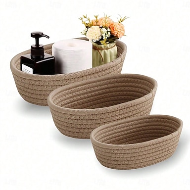 Cestos ovais elegantes em tecido trançado com corda - organizadores de mesa dobráveis e decorativos para cosméticos e lanches. &Chaves com design elegante em formato de barco, sem impressão, solução