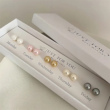 Conjunto de caixa de presente com 5 pares de brincos de pérolas falsas, elegantes e luxuosos, brincos para combinar diariamente de segunda a sexta-feira