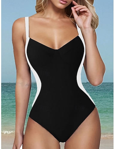 Maiô Feminino de Uma Peça Afinador Monokini em Block de Cores Com Calcinha Controle de Barriga Cintura Alta Slim Costas Descobertas Elegante Roupas de Praia de Férias Block de Cores Decote em V Sem