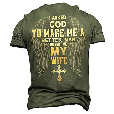 Homens Letra Cruz Jesus Camiseta T-shirt 100% Algodão Manga Curta Gráfico Camisa Preto Verde Tropa Azul Escuro Camiseta confortável Rua Esportes Roupas de estilistas