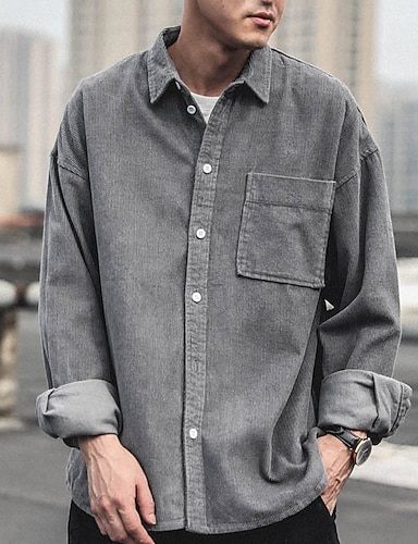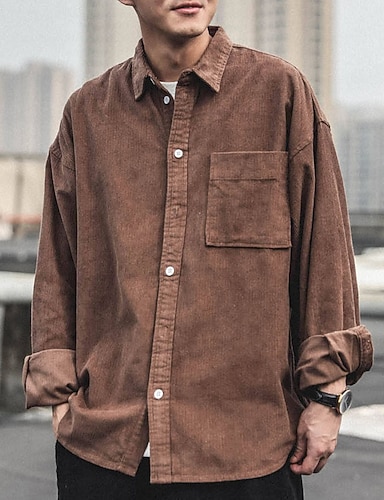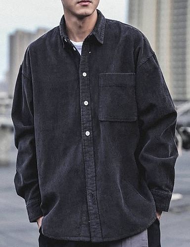 Homens Camisa Social Camisa casual Camiseta de Veludo camisa de botão Camisola Azul Verde Caqui Manga Longa Aberto para a Lateral Casual Ao ar livre Bolsos Roupa Vintage Casual