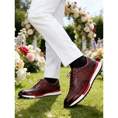 Tênis de corrida masculino em couro bordô – design esportivo com ajuste confortável, perfeito para casamentos casuais, eventos ao ar livre e uso nos fins de semana.
