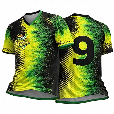 Homens Camisa de futebol Geométrica Gradiente Carta e Número Top de corrida Camiseta esportiva Verão Manga Curta UPF 50 Secagem Rápida Pavio Humido Respirável Torneio Futebol Americano Academia