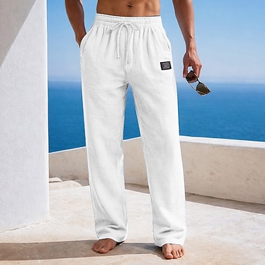 Homens Calças de linho Calças Calça verão Calças largas Calças de praia Com Cordão Cintura elástica Perna reta Tecido Conforto Respirável Comprimento total Casual Diário Feriado Férias Estilo Clássico