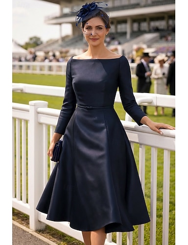 Tubinho Longuette Vestido de festa Vestido Coquetel Vestido de convidada de casamento Vestido Para Mãe dos Noivos Manga 3/4 Decorado com Bijuteria Elegante Vintage Convidado do casamento Festa de