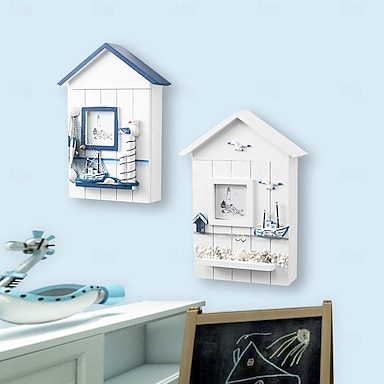 Decoração de parede pendurada na parede, caixa de chave de casa mediterrânea, armazenamento criativo, artesanato em madeira, hall de entrada