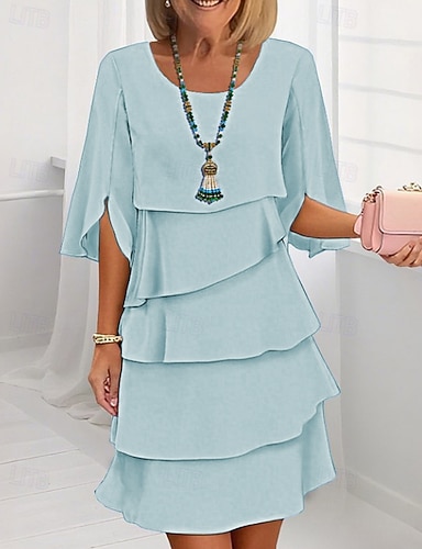 Mulheres Minivestido Vestido de convidada de casamento Vestido de chiffon Tiered Dress Moda Clássico Moderno Ao ar livre Feriado Para Noite Normal Tecido Meia Manga Gola Redonda Azul Preto Rosa